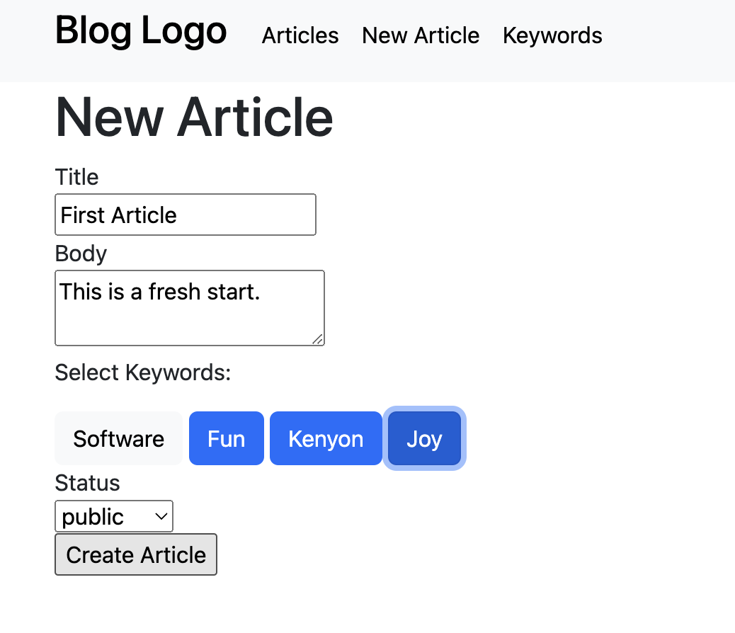 We then use the @article_args to create teh new article, and @keywords_args to add the keywords.