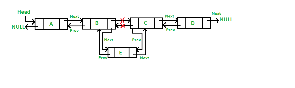 - All operations require an extra pointer previous to be maintained. For example, in insertion, we need to modify previous pointers together with the next pointers. For example in the following functions for insertions at different positions, we need 1 or 2 extra steps to set the previous pointer.