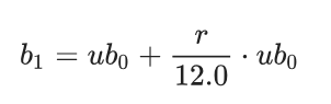 Monthly payment upper bound = (Balance x (1 + Monthly interest rate)12) / 12.0