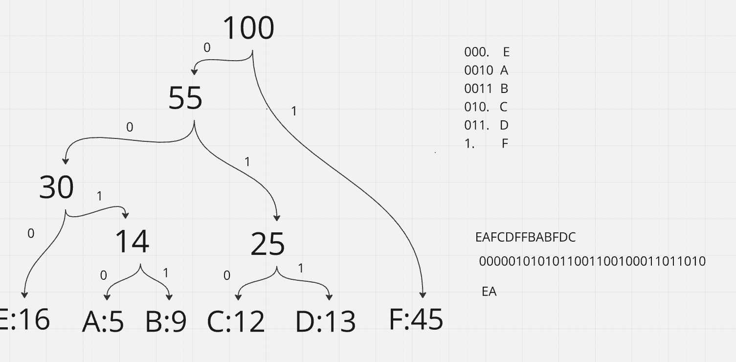 cssCopy code[(F):45, (CDEAB):55] -> Root