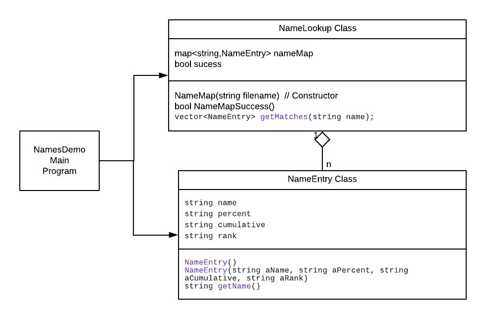 Below is an example of a design for the Name Lookup program (C++ version) :