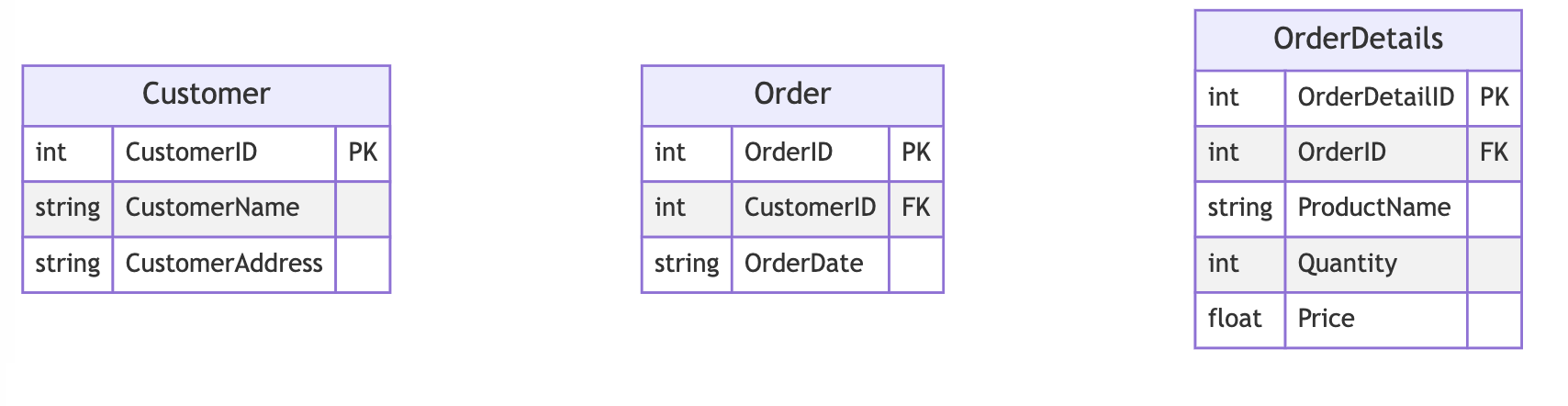 | CustomerID | CustomerName | CustomerAddress |
