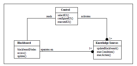 - Description: A shared knowledge base (blackboard) where different subsystems contribute to solving a problem.