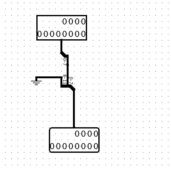 - When we fetch an instruction we now have to have a way for grabbing and using the bottom 8-bits of an instruction as an address. The easiest way to achieve this is to use one of the unused outputs on the source decoder to select an alternative output from memory. I have used the 7th pin on the decoder (6, or 110) to select the output from memory that has been routed through a simple device that masks off the top 4 bits, leaving only the lower 8. Below is the insides of this device: